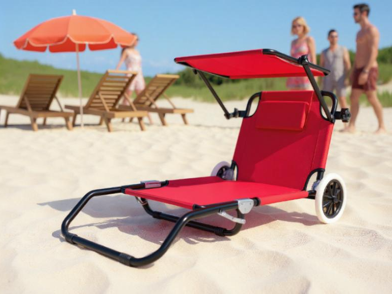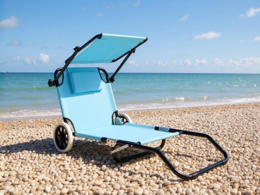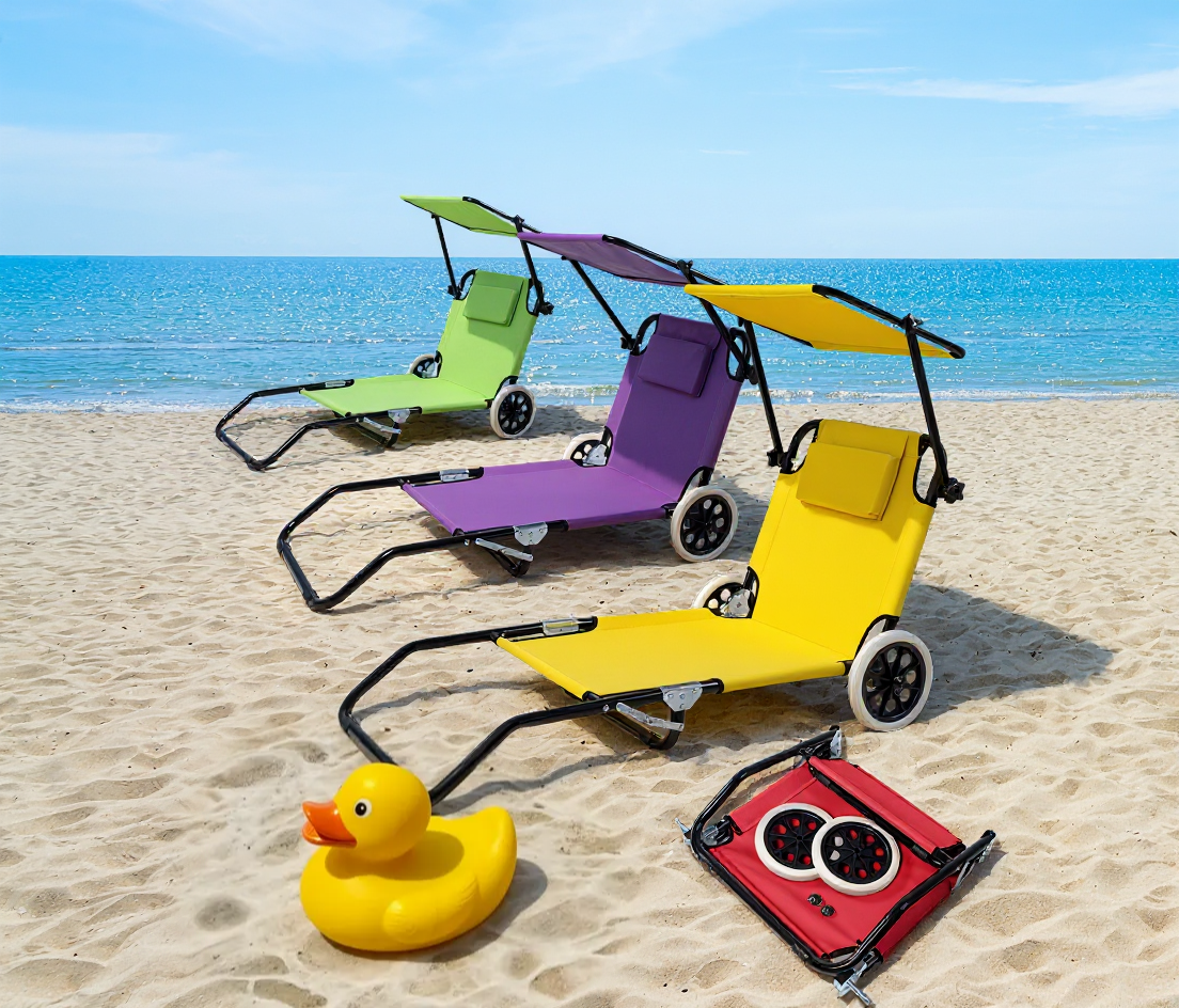 Это полноценный пляжный шезлонг-трансформер, который за пару движений превращается в тележку для перевозки вещей. Компактный, лёгкий и удобный — он создан для отдыха с комфортом.